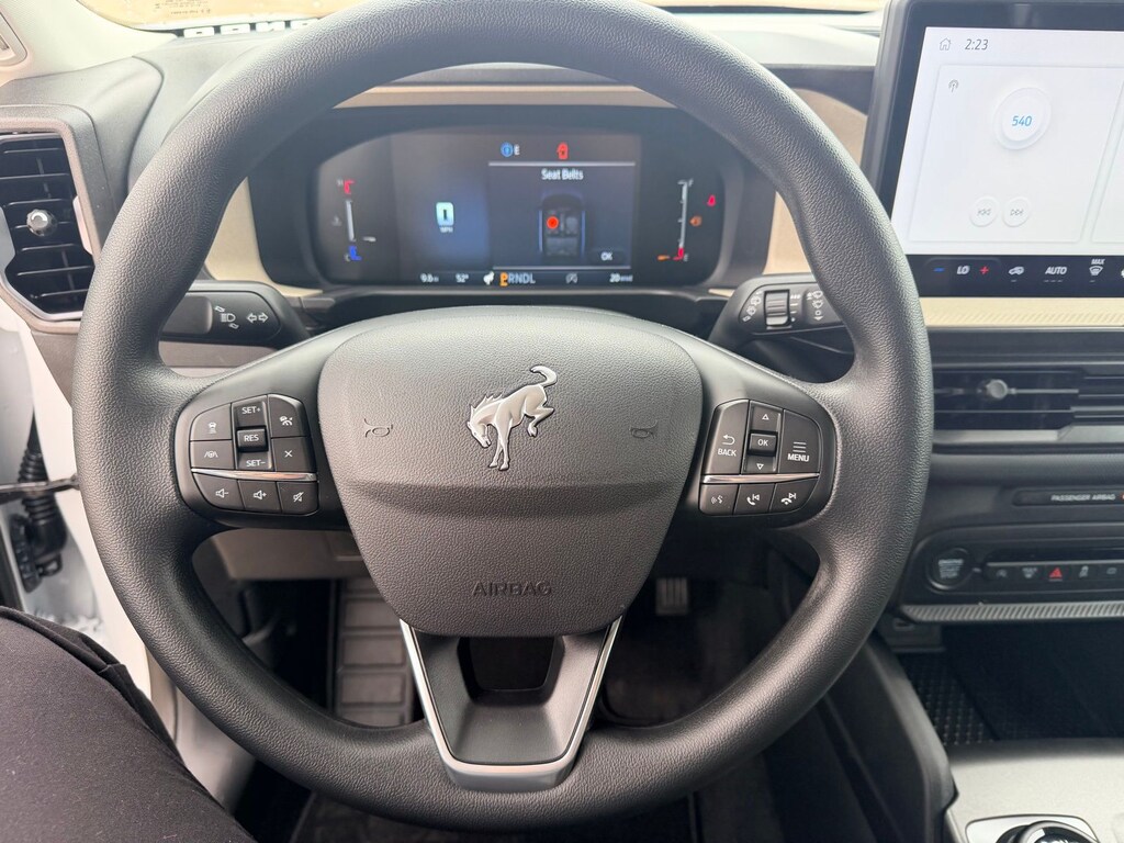 I got a 2025 Big Bend with the black diamond off road package. The steel modular front and rear in combination with bush guard gives this year model. A very aggressive off road look. With the ability to easily mount accessories and power them with the factory installed auxiliary switches. Hitch receiver seamlessly mounted into the rear steel bumper flanked by some very chunky recovery points. The upgraded aluminum rims wrapped with Continental all-terrains. It make this the most capable bronco sport yet. The interior of the 2025 has been updated with a new 13 inch touchscreen with Android Auto and apple car play. The lines of the dash flow elegantly from the new infotainment screen to the new all digital 12 inch gauge chaster. Toggling through the different modes on the gauge chaster is very intuitive, and all the displays are laid out very cleanly. Moving from gauge chaster the center storage cubby just below the infotainment screen there is a wireless charger and USB/ USB-c ports. The passenger side of that same cubby gets a handle and a matching one on the roof just in case the driver bucks a little too much. The passenger also gets a mesh storage area. That leads us to the fact this vehicle has tons of storage options all throughout. You have pockets on the sides of the front two seat big enough for the latest new phones. Very generous door storage on all four doors plus huge glove box and center console with 12 volt outlet. The back side of the center console has air vents and another 12 volt outlet plus a 110 outlet. Now getting to the cargo area it is massive for a crossover SUV. With off road package you get a cargo management system and a very nice rubber mat. Under that there is a full size tire plus scissor jack and funnel to use with the capless filler system. On the liftgate there isa pair of very bright led lights turned on with a switch in the cargo area. This feature packed vehicle has tons awesome gadgets and hidden a little homages I spend all day just talk that. At the end of the day it is car. So how does it drive. It is wonderful, the steering and pedal response is beautiful. Rides very smooth and little to no road noise going down the highway. The active cruise control and co-pilot 360 have been very handy. The car literally drives itself most of the time. There is not enough good things I could same about this car. I love it and you pick one too. You will see what I mean. - 5.0