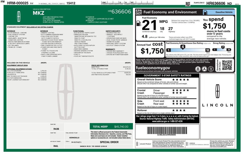 Blue 2017 Lincoln MKZ Reserve FWD 6-Speed Automatic with Select-Shift 3.0L GTDI V6